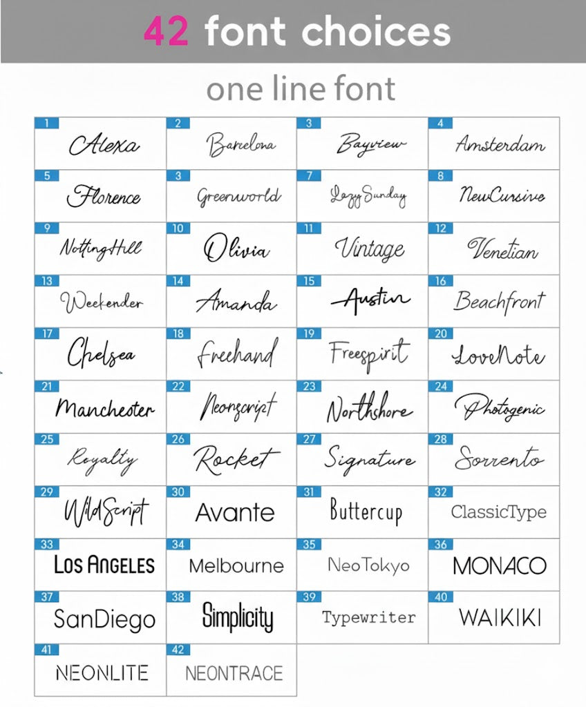 ✔ 36 different fonts– customize your sign with the typographic style that best reflects your identity.